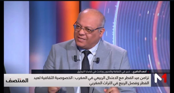في الزاوية الثقافية ليومه الأحد 22 مارس 2026، وضمن نشرة أخبار المنتصف بقناة “ميدي 1 تيفي”، قدم الدكتور أحمد الدافري، الباحث في قضايا التوثيق والخبير في الثقافة والفنون، قراءة تحليلية لحدث فلكي وثقافي نادر، متمثلاً في حلول عيد الفطر المبارك بالتزامن مع تباشير الاعتدال الربيعي، مبرزاً كيف صاغ الوجدان المغربي عبر العصور ثقافة استثنائية تحتفي بالخصوبة والحياة.
