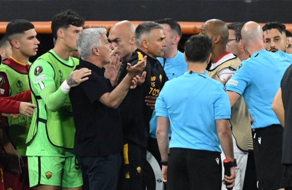 وقام مورينيو المدير الفني لروما الإيطالي بالصراخ في وجه الحكم، عقب خسارة فريقه أمام إشبيلية الإسباني بركلات الجزاء الترجيحية.