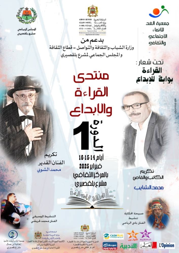 تنظم جمعية الغد للإنماء الاجتماعي والثقافي بمشرع بلقصيري تحت شعار ” القراءة بوابة للابداع ” منتدى القراءة والابداع في دورته الأولى وذلك أيام 14 و 15 و 16 فبراير 2025 بالمركز الثقافي لمدينة مشرع بلقصيري.