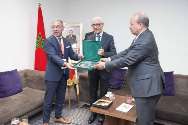 استقبل راشيد الطالبي العلمي رئيس مجلس الن واب والسيد النعم ميارة رئيس مجلس المستشارين، كلا من Duarte Pacheco رئيس الاتحاد البرلماني الدولي والسيد Martin Chungong الأمين العام للاتحاد، أمس الثلاثاء 13 يونيو 2023 بالتزامن مع انعقاد المؤتمر البرلماني الدولي حول “حوار الأديان : لنتعاون من أجل مستقبل مشترك” الذي ينظمه البرلمان المغربي والاتحاد البرلماني الدولي بمراكش من 13 إلى 15 يونيو 2023.